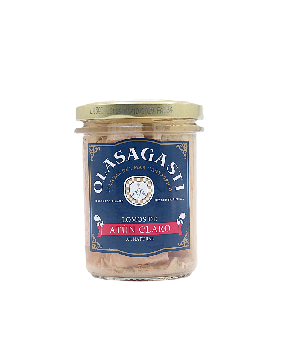 Si crees que todos los “Atún Claro” son iguales es que no has probado el atún claro Olasagasti. El atún claro al natural de este frasco de 190 g es ideal para aquéllos que se cuidan, para los que lo emplean en platos elaborados o prefieren aderezarlo cada día con salsas/aceites diferentes. Lomos seleccionados introducidos a mano después de cocerlos, sin otro condimento que el agua de cocción y un punto de sal, resalta su sabor y su textura firme. Perfecto para dietas o no dietas, o sea, para todos; Somos así de apañados.